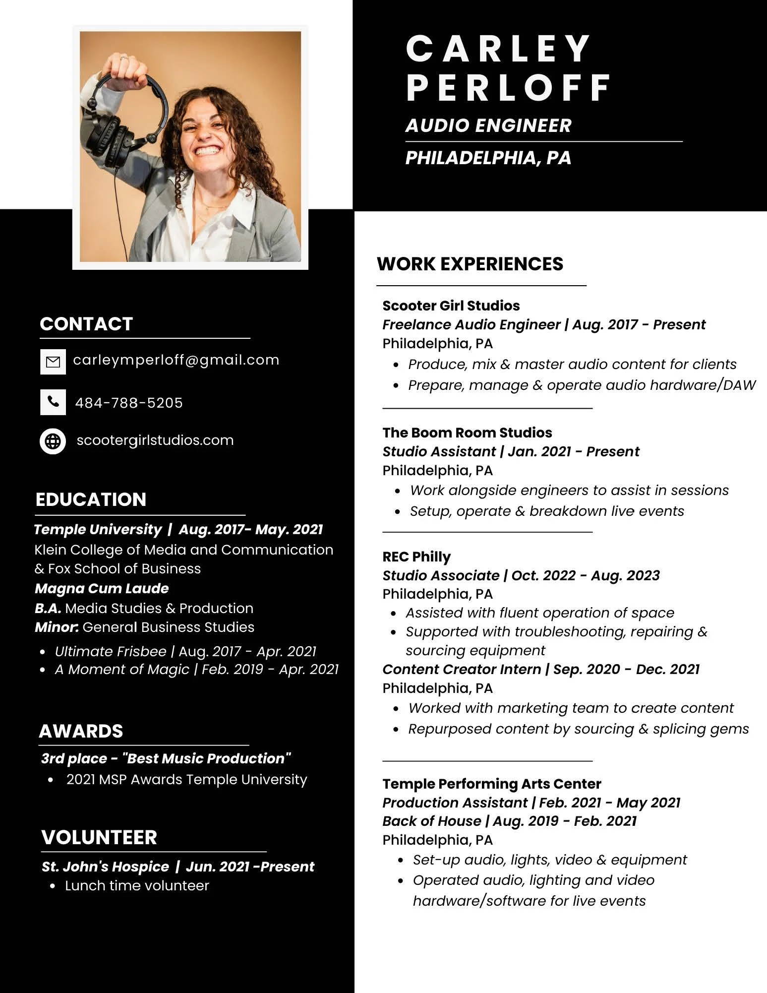 I am a graduate of Temple University with a degree in Media Studies & Production and a minor in Business. I’ve always had a passion for content creation ever since I wrote my first song in elementary school. I’ve spent the past few years developing skills in various realms of audio production which has inspired me to begin freelancing and helping others along their journey through the art of audio production! I spend my free time writing and recording music for myself and my band, Cuddle Puddle.